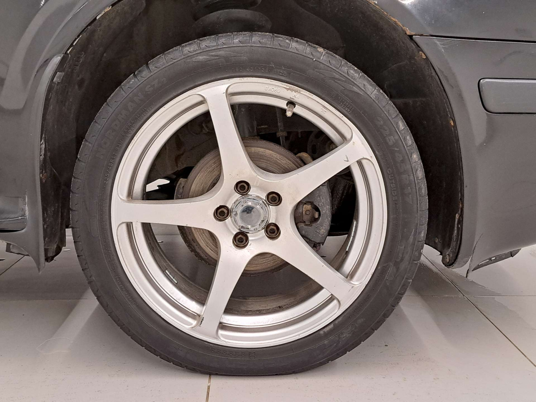 Летние шины на красивых литых дисках придают автомобилю стильный вид.